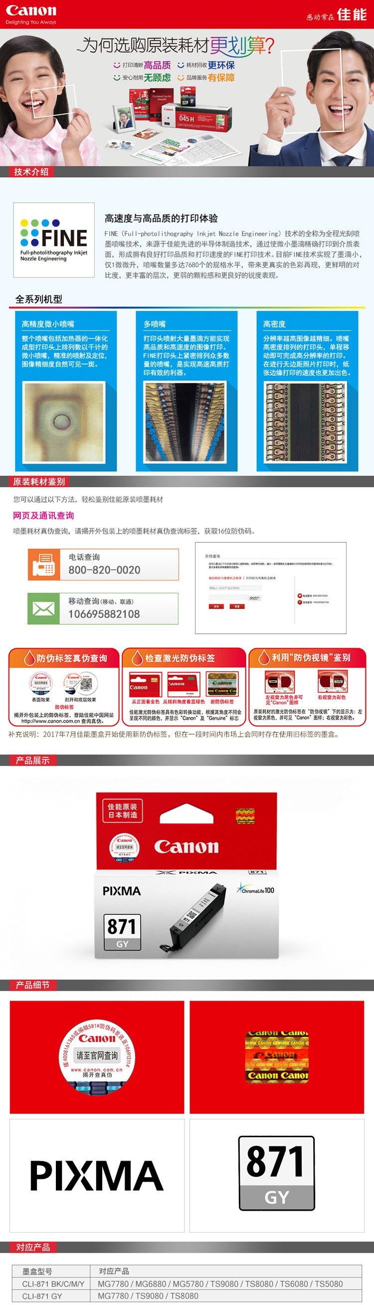 • 商品名稱:佳能(Canon) CLI-871 GY 灰色墨盒 打印量-頁 適用于MG7780、MG6880、MG5780、TS9080、TS8080、TS6080、TS5080