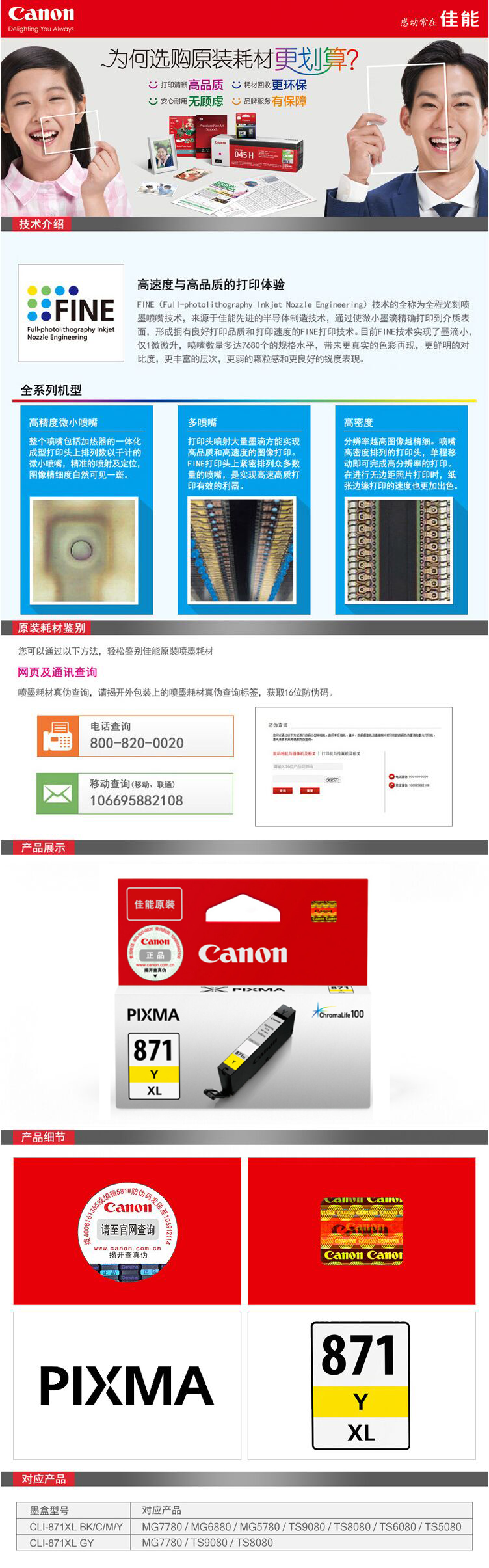 • 商品名稱:佳能(Canon) CLI-871XL Y 大容量黃色墨盒