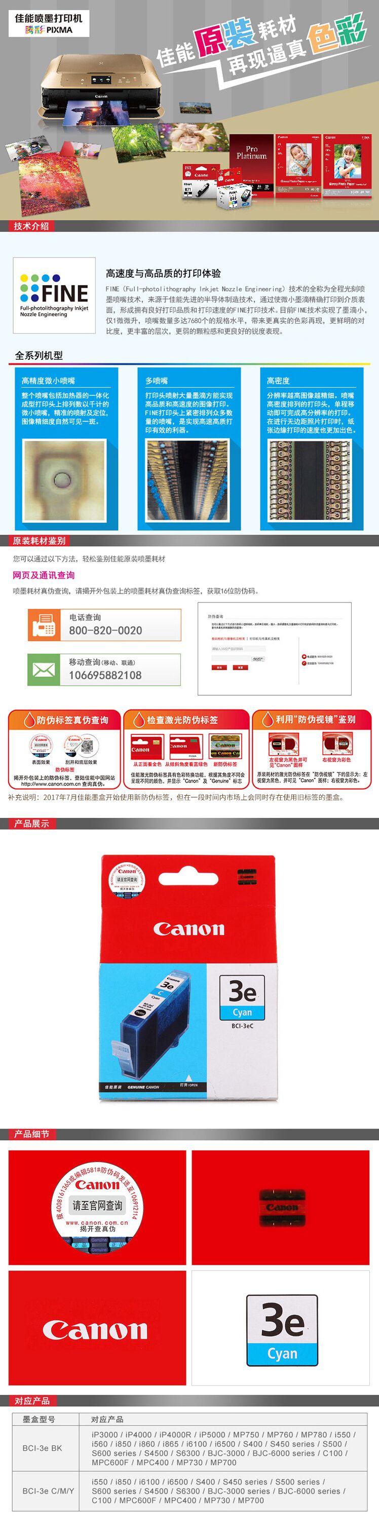 • 商品名稱:佳能(Canon) InkTank BCI-3e C 青色墨盒 打印量-頁 適用于i6500/i6100 MP730