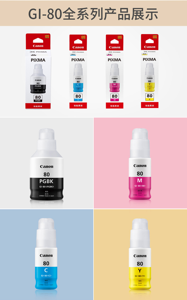 • 商品名稱:佳能(Canon) GI-80 BK 黑色墨水瓶 打印量6000頁