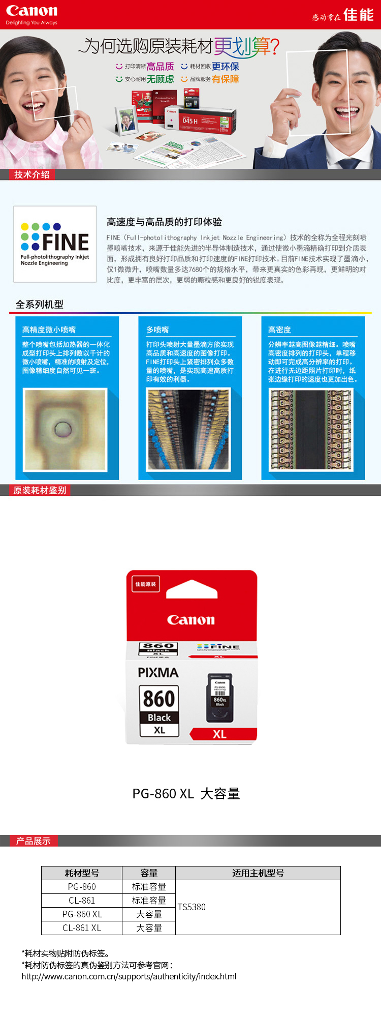 佳能(Canon) PG-860XL 黑色墨盒 打印量400頁(yè)